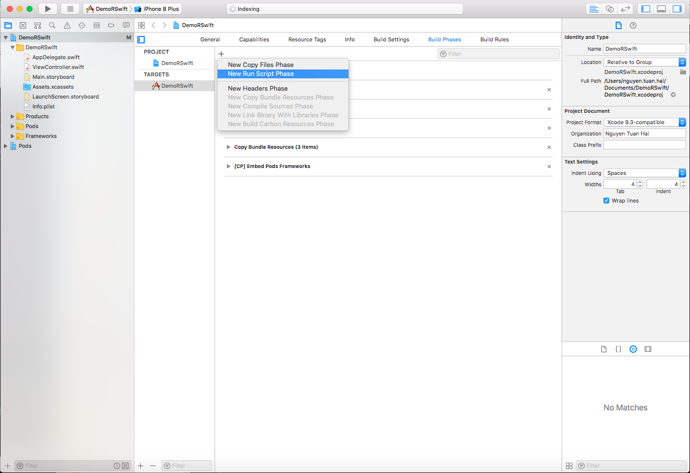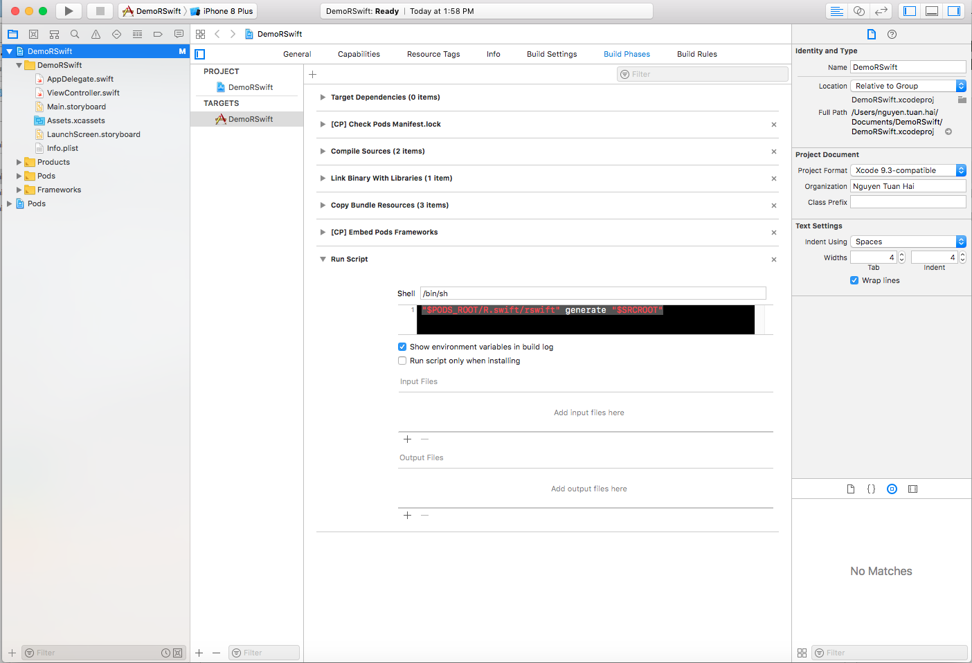 Run Scriptvừa tạo"$PODS_ROOT/R.swift/rswift" generate "$SRCROOT".