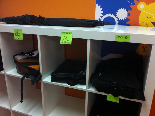 Để dễ hiểu hơn, bạn có thể xem hình ảnh dưới đây. Đó là những khoang- hộp được dán nhãn, mà nhiều trường cung cấp cho học sinh để cất quần áo, sách vở, balo ... Và ta gọi là variable là vị trí của hộp, nhãn của hộp là tên của variable (hay còn gọi là identifier), và thứ chứa trong hộp gọi là giá trị của variable.