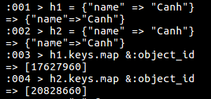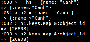 Ở đây h1 và h2 đều sử dụng key là "name" nhưng key này lại được lưu ở các vùng nhớ khác nhau. Điều này sẽ trở nên tồi tệ nếu chương trình phình to ra. Để giải quyết vấn đề này thì hãy sử dụng Symbol cho key của hash