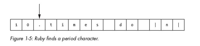 Vì . được cho là một token nên hai kí tự đầu 1, 0 sẽ là một số integer, ruby convert chúng thành 1 token ( loại tINTEGER )