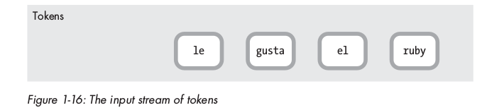 Đầu tiên, đoạn code được ruby token hóa, đọc tất cả các dòng text trong file source code và convert chúng thành những tokens.