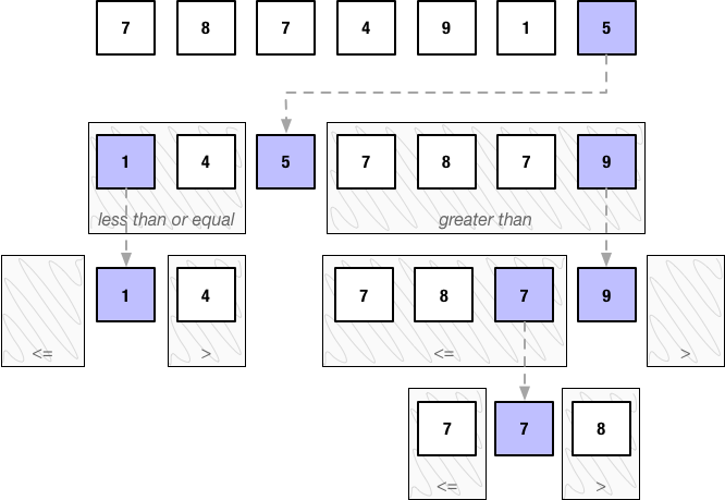 Cùng xem ảnh bên dưới để hiểu hơn về hoạt động của quicksort.