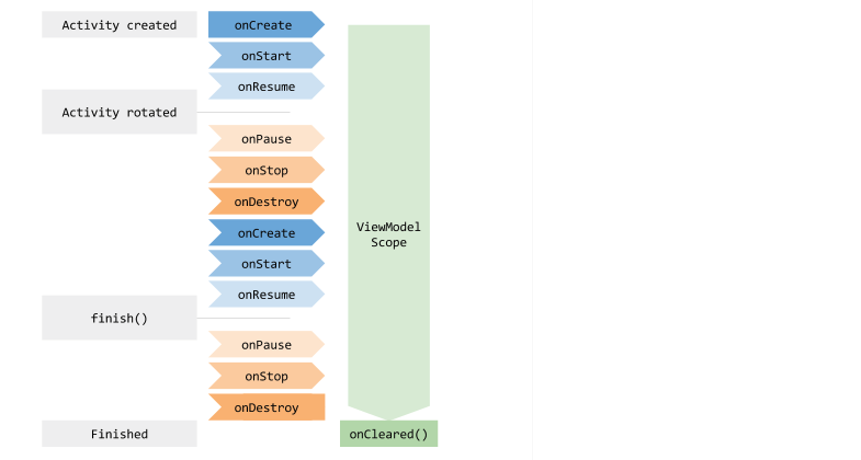 . - Trong trường hợp thứ 3, Activity chạy vào onDestroy() và đồng thời nó cũng sẽ bị finish do đó ViewModel cũng sẽ bị clear luôn