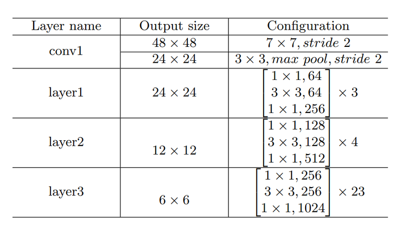 Mô hình sử dụng một số lớp CNN để trích xuất đặc trưng, cụ thể tác giả đã sử một 4 lớp đầu tiên của mạng ResNet-101. Mô hình được biểu diễn dưới hình sau: