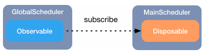 Observing là một trong ba khái niệm cơ bản của Rx. Nó liên quan đến một thực thể với các sự kiện và một observer lắng nghe cho các sự kiện đó. Trong trường hợp này subscribeOn vàobserveOn đối lập nhau về thay đổi scheduler nơi observation thực hiện. Một sự kiện được kích hoạt bởi một Observable cho tất cả các observer đã đăng ký và chúng sẽ đảm bảo rằng sự kiện được xử lý trong chính xác scheduler của nó. Để chuyển từ current global scheduler sang main thread, bạn cần gọi observeOn trước khi subscribing: