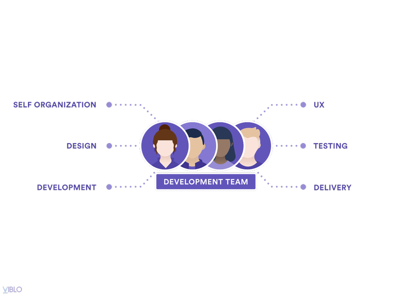 Development team ở đây không chỉ có kỹ sư phần mềm mà còn bao gồm tất cả mọi thành phần tham gia quá trình phát triển dự án, có thể là designers, programmers, writers,...