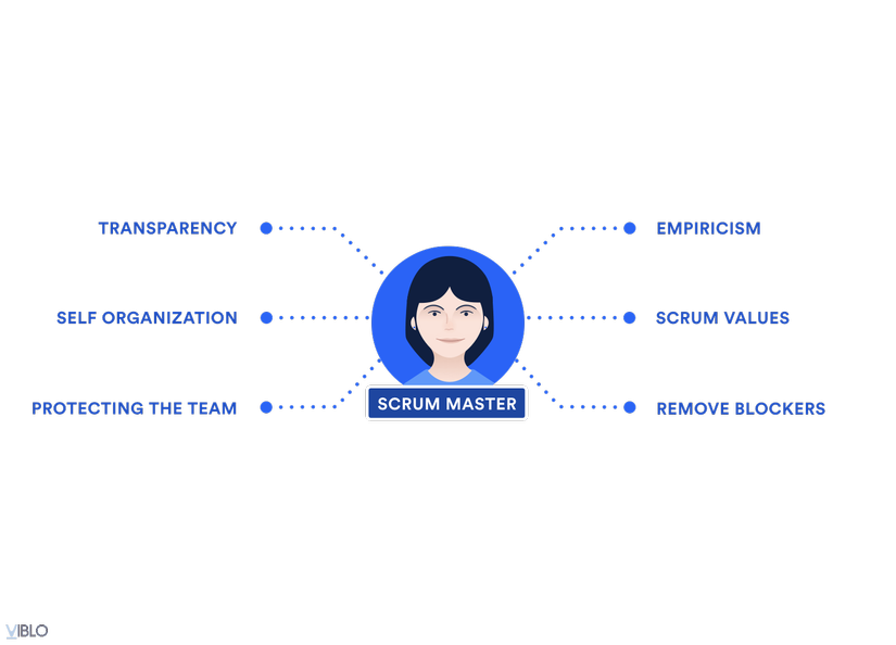 Scrum Master chịu trách nhiệm tổng hợp mọi thứ lại và đảm bảo team làm việc hiệu quả với Scrum. Ngoài ra, Scrum Master còn giúp Product Owner hiểu rõ hơn về các giá trị, lập kế hoạch và chia nhỏ công việc một cách hiệu quả nhất.