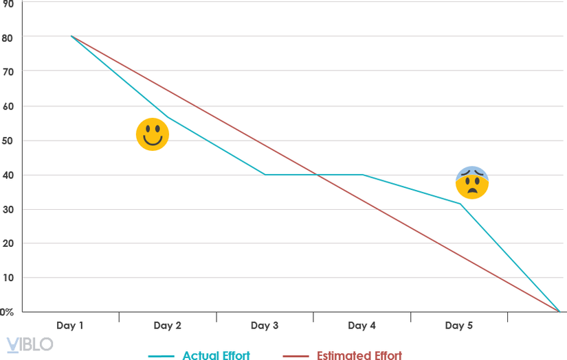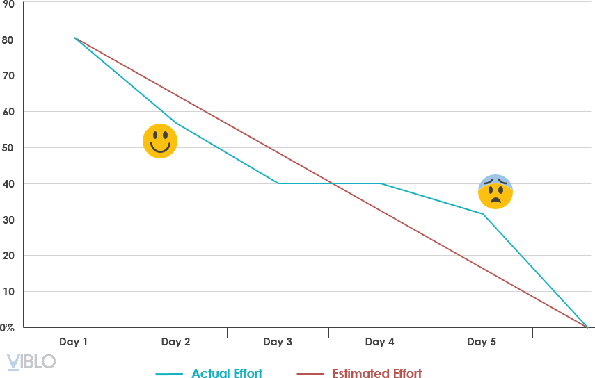 Burndown chart là biểu đồ thể hiện xu hướng của dự án dựa trên thời gian cần thiết còn lại để hoàn thành công việc.