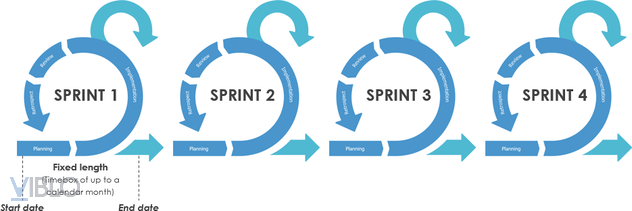 Các Sprint sẽ được lặp đi lặp lại cho tới khi nào các hạng mục trong Product Backlog đều được hoàn tất hoặc khi Product Owner quyết định có thể dừng dự án căn cứ tình hình thực tế.