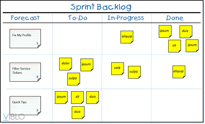 Bản kế hoạch cho một sprint, được hình thành sau buổi họp sprint planning. Các công việc sẽ được phân chia theo thứ tự ưu tiên và được thể hiện dưới dạng Todo List( Danh sách các công việc cần làm)