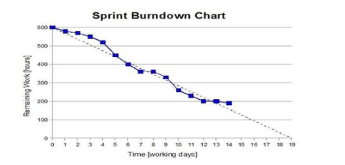 Burn down chart: Mỗi ngày, Scrum Master ghi lại công việc ước tính còn lại cho sprint. Nó được cập nhật hàng ngày.