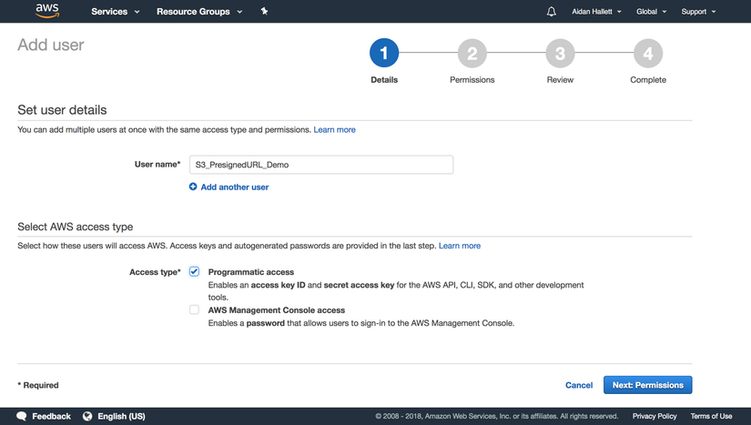 Điều đầu tiên chúng ta cần làm là tạo một người dùng IAM có quyền truy cập vào cả việc đọc và ghi các đối tượng vào S3. Khi đó, 1 API key sẽ được tạo cho người dùng IAM, key này sẽ được lưu trữ dưới dạng một biến môi trường trên server.