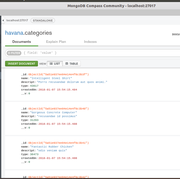 Xong công đoạn chuẩn bị râu ria rồi nè. Giờ giả dụ bạn cần seed dữ liệu cho collection category trên chẳng hạn. Ví dụ mình sẽ seed 15 mẫu dữ liệu nhé :