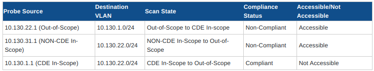 Non-CDE out-of-scope: Các VLAN thuộc phạm vi ngoài CDE là các VLAN không lưu trữ, lưu giữ, xử lý và truyền dữ liệu chủ thẻ và hoặc có bất kỳ loại phụ thuộc nào từ CDE trong phạm vi. Họ không được phép giao tiếp với CDE trong phạm vi trong mọi trường hợp.