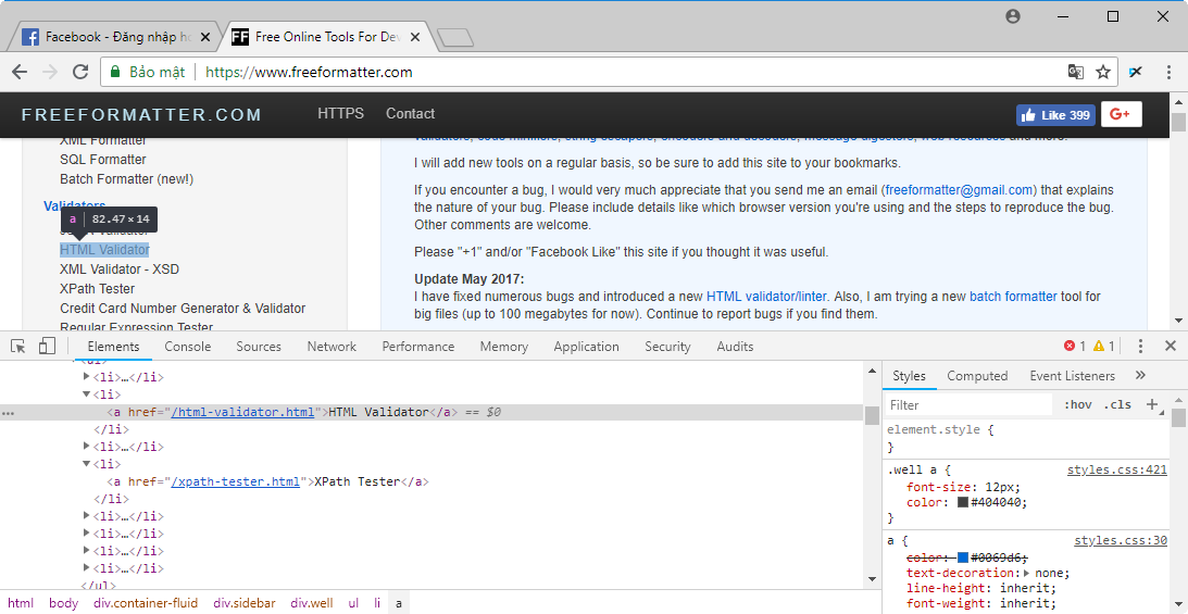 Bây giờ chúng ta hãy hiểu cách sử dụng thực tế của mỗi phương pháp định vị, áp dụng trên trang https://facebook.com và https://www.freeformatter.com/.