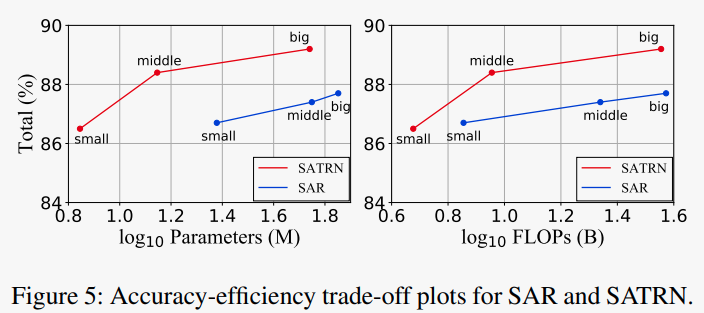 Hình 5 cho thấy việc sử dụng lớp self-attention cho khả năng trade-off giữa độ chính xác và hiệu quả tốt hơn.
