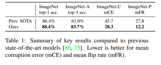 Nhưng theo tôi, thành công lớn nhất của paper là train được một model robust, tăng very significant performace trên các dataset mà chứa difficult images, common corruption và perburbations (ImageNet A, C, P) và đặc biệt là trên adversarial perturbations.