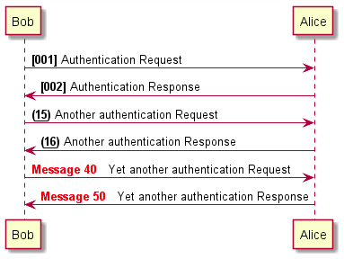 autonumber 40 10 "<font color=red><b>Message 0 "