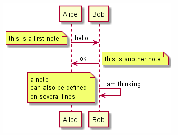- Có thể ghi chú vào tin nhắn bằng cách sử dụng từ khóa note left hoặc note right ngay sau message.