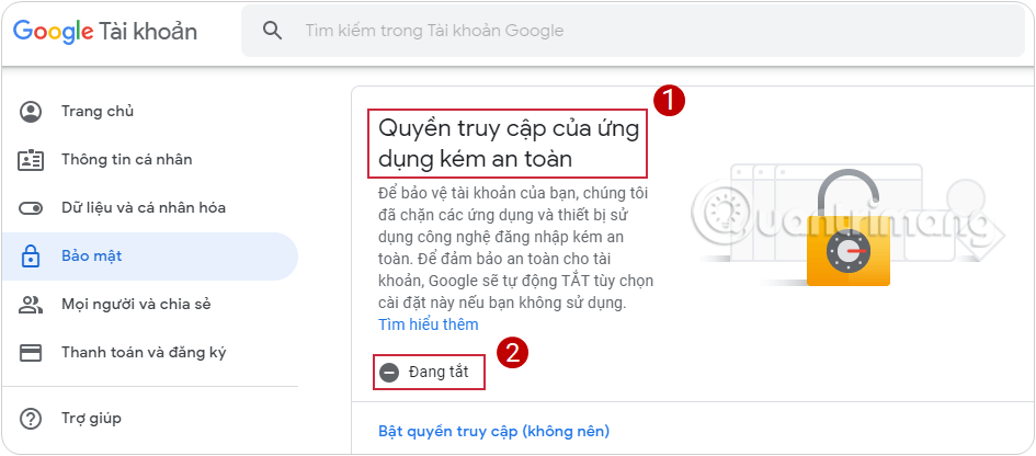 Khi bạn đang ở Trang Tài khoản của tôi, sau đó nhấp vào Bảo mật và cuộn xuống phía dưới và bạn sẽ tìm thấy cài đặt 'Truy cập ứng dụng kém an toàn' . Nhấp vào nút radio để bật nó.