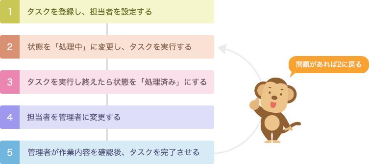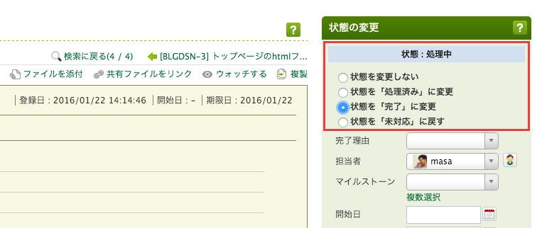 - Người quản lí sau khi xác nhận task, sẽ đóng task đó, chuyển trạng thái sang 「完了/Hoàn thành」. Nếu có vấn đề thì quay lại bước 2.