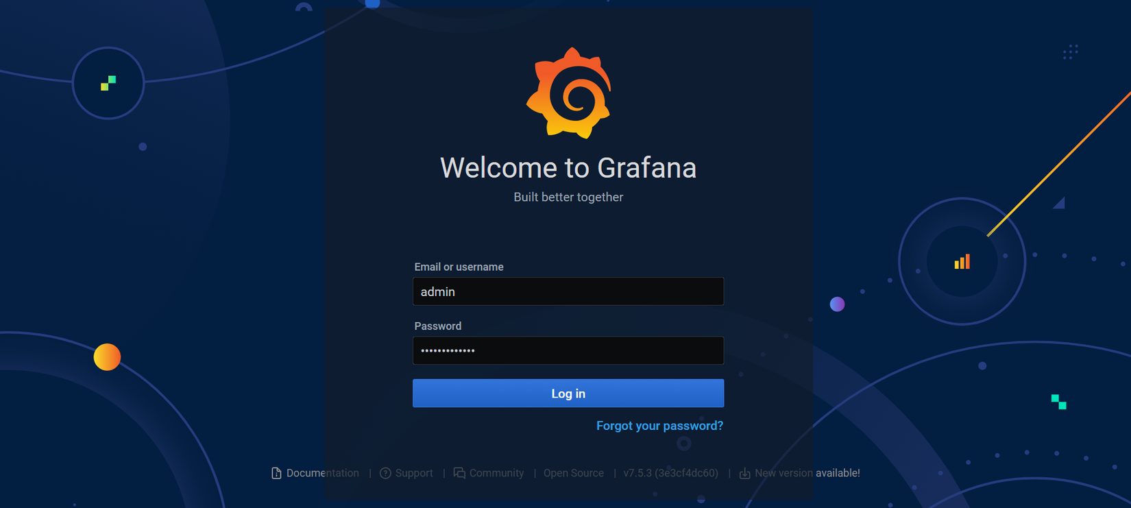 - Truy cập [ip của vps]:3000 ví dụ vps mình là: 132.123.1x.xx:3000 sẽ thấy xuất hiện trang login của grafana như sau.