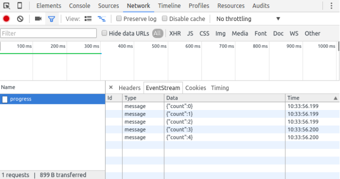 var sse = new EventSource('/comments/progress');