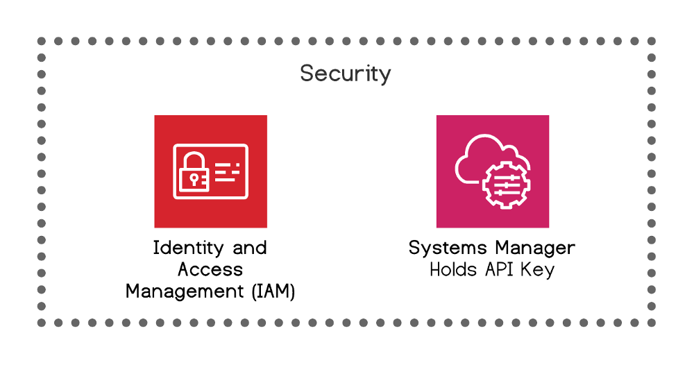 Liên quan tới data "sensitive", như SaaS API key, chúng tôi lưu trữ an toàn trong Parameter Store của Systems Manager. Và yêu cầu chúng từ bên trong các file Serverless và CloudFormation, hoặc thậm chí từ trong mã code với SDK được liên kết. Nó rất có ích khi Secrets Manager thực hiện một công việc tương tự. Và Key Management Service (KMS) giúp chúng tôi quản lý các key mã hóa của mình.
