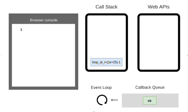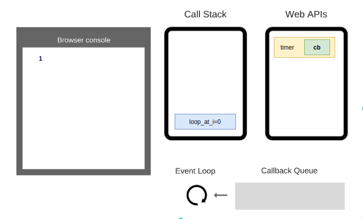 - stack trống, event loop đẩy