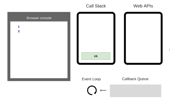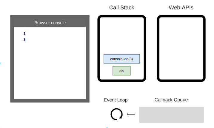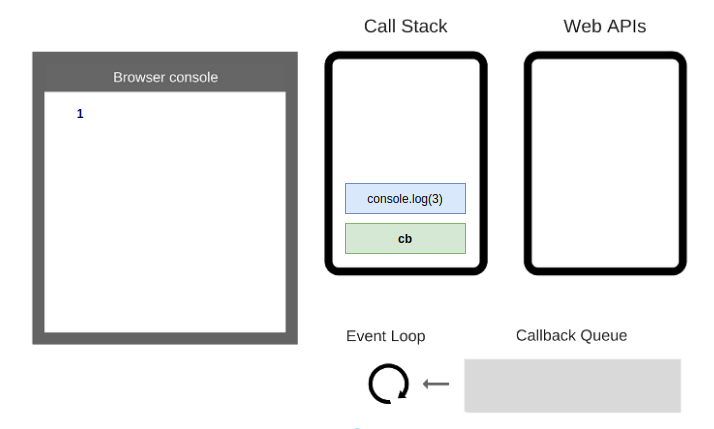 cbđược thực hiện, đẩyconsole.log(3)vào stack