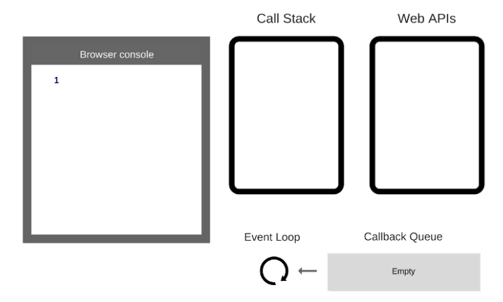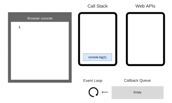 console.log(1)được đẩy vào stack