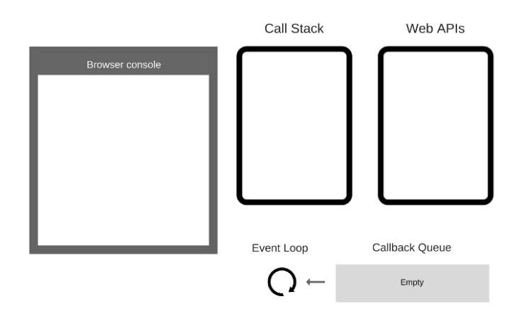 - Call stack rỗng, chưa có gì được thực hiện