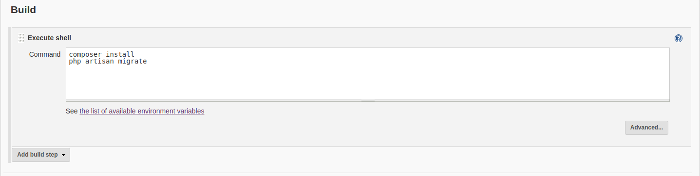 Ở tab Build các bạn chọn Execute shell. Các bạn input vào các command line mà bạn muốn chạy sau khi jenkin pull code về