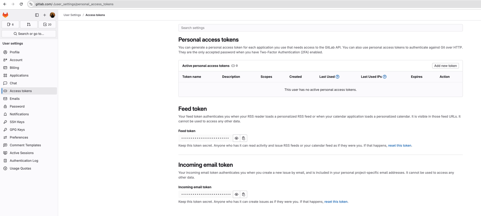 - Bước 1: Tạo Access Token, các bạn bấm vào Avatar => Edit Profile => Access tokens.