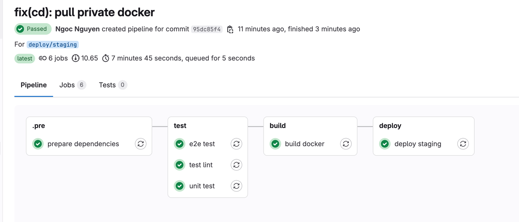 Sau khi đã copy xong giờ chúng ta thử chạy lại CICD ở nhánh deploy/staging nhé.
