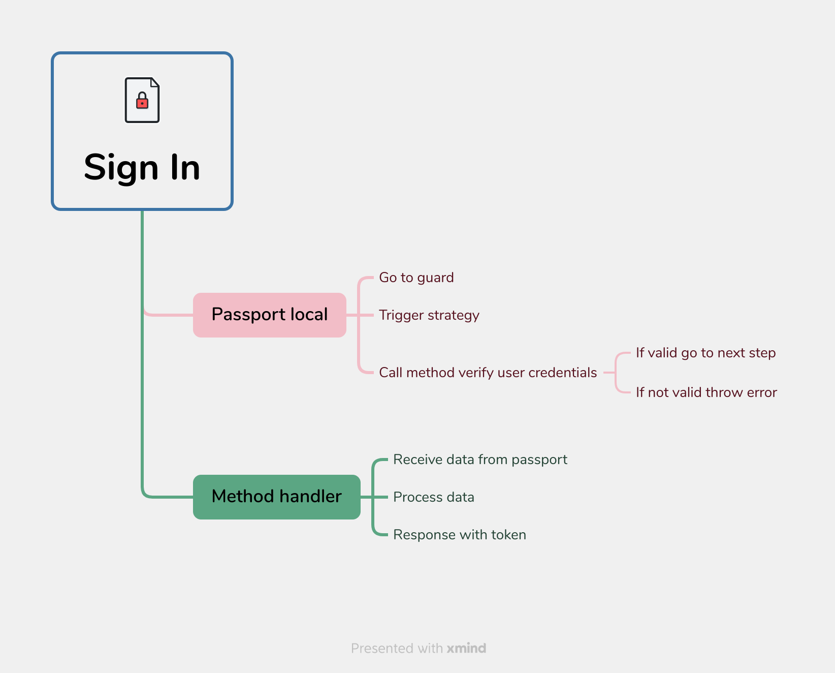 User gọi API đăng nhập để lấy access token. Passport-local sẽ thông qua auth service sẽ tiến hành validate thông tin đăng nhập và trả về token cho user.