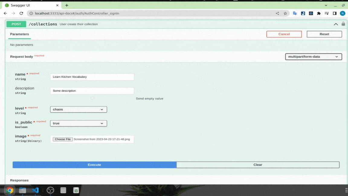 Tuy nhiên, các bạn có thể thấy nó không phù hợp lắm với những gì chúng ta cần gửi đi. Ví dụ như property user chúng ta sẽ lấy ra từ token chứ không gửi lên trong request body. Để mọi thứ hoạt động theo đúng ý chúng ta hơn, mình sẽ dùng decorator ApiBody để biểu diễn thông tin request body. Để minh họa sẽ dùng module auth (lát nữa module flash-card sẽ được dùng cho việc minh họa upload file bằng multipart/form-data).