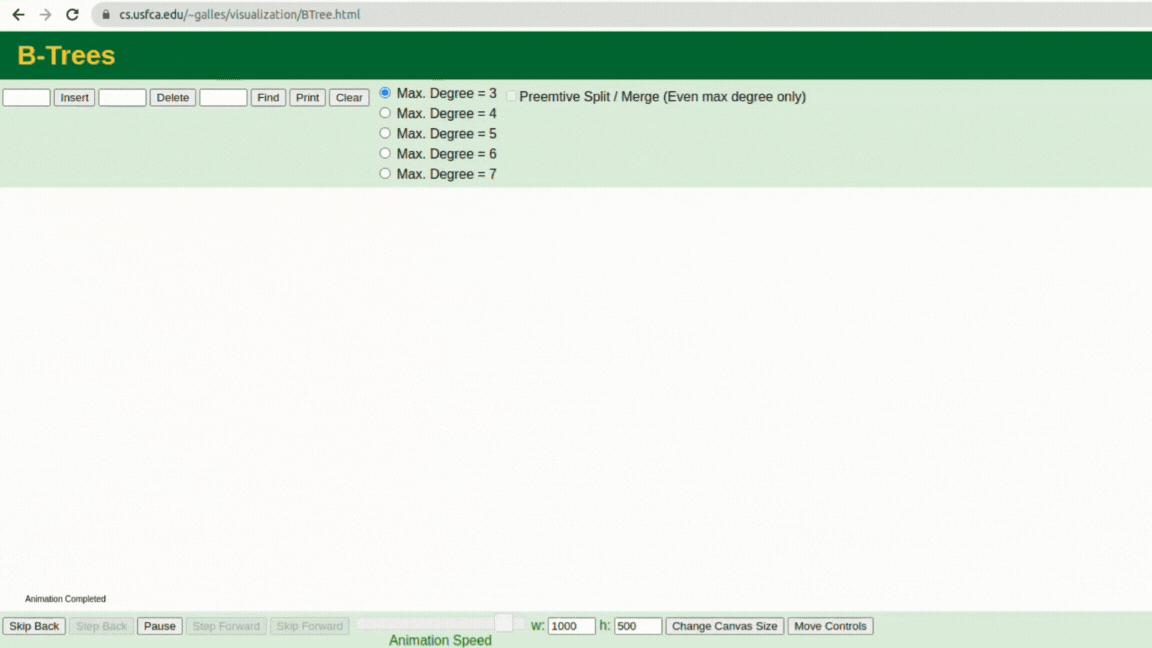 - Index được lưu trữ theo cấu trúc dữ liệu B-Tree (Balanced Tree). Gif bên dưới minh họa cách dữ liệu được lưu với Max.degree=3