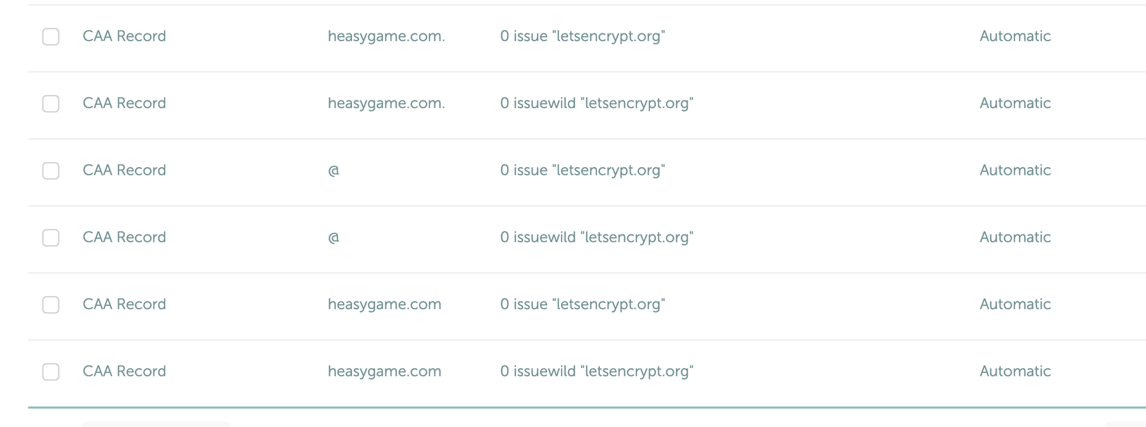 Vậy tất cả chúng ta làm là thêm CAA record phát hành wild-card cert cho Lets Encrypt, vậy là xong