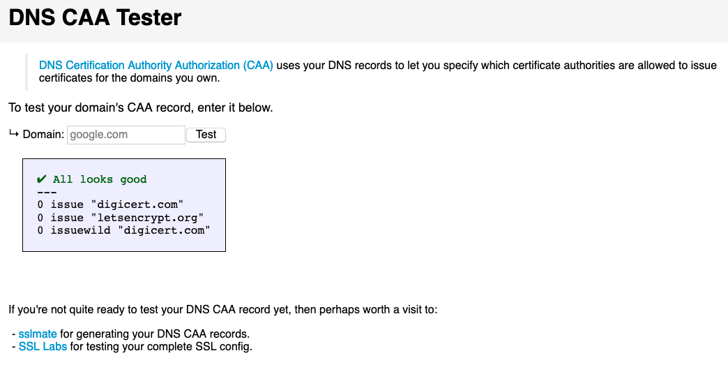 Chúng ta có thể kiểm tra thử CAA hiện tại thông qua https://caatest.co.uk/