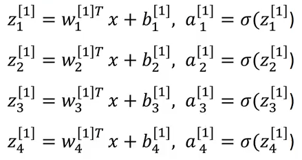 Các bước này sẽ thực hiện trên mỗi tế bào thân kinh. Các phương trình cho lớp ẩn đầu tiên với 4 nơ-ron sẽ là: