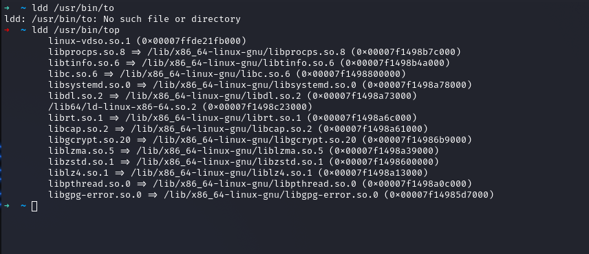 Để xem các thư viện của một application ta có thể sử dụng command ldd