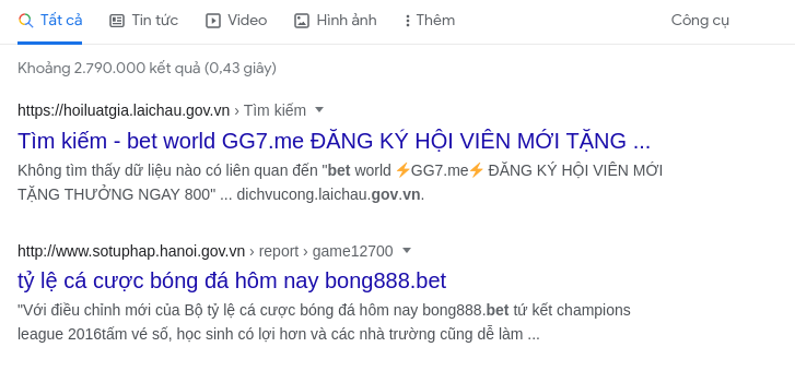 Đây là một hình thức SEO bẩn lợi dụng các trang web bị hack để tạo thành mạng lưới PBN và phát tán nội dùng refer tới trang web của kẻ tấn công. Có rất nhiều các trang web đặc biệt là wordpress đã bị tấn công với hình thức tương tự, trong đó có cả các trang web thuộc về các cơ quan chức năng với tên miền .gov.vn như dưới đây: