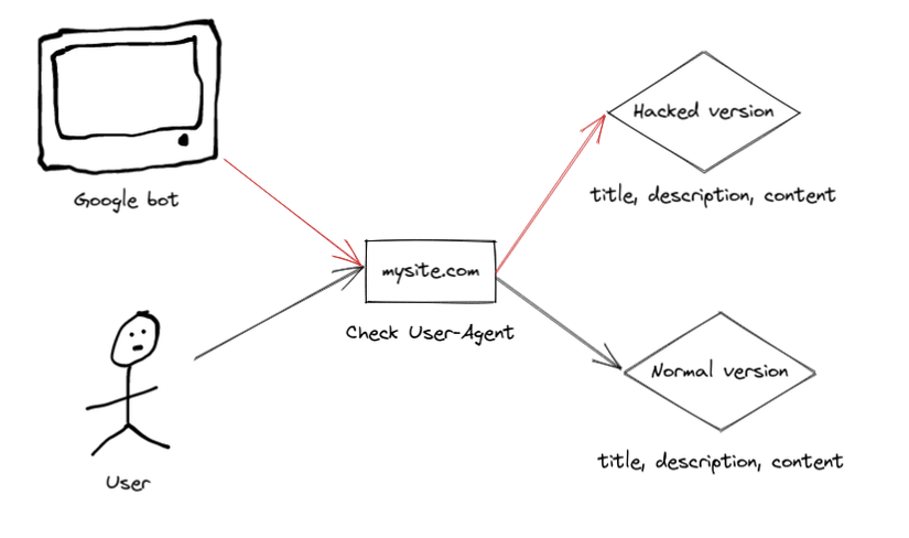 Trong con mắt ngỡ ngàng của tôi và hai người đồng hành, anh tiếp tục cho chúng tôi xem những dấu chân lộn xộn vô hình mà chỉ có thể thấy qua lăng kính Google bot. Nếu như các bạn đã đọc nghiên cứu mới đây của tôi về lăng kính Google bot trong bài viết Tôi, NuxtJS và trang livestream vạn CCU thì chắc hẳn sẽ hiểu được tại sao kẻ gian lại có thể làm được điều này.