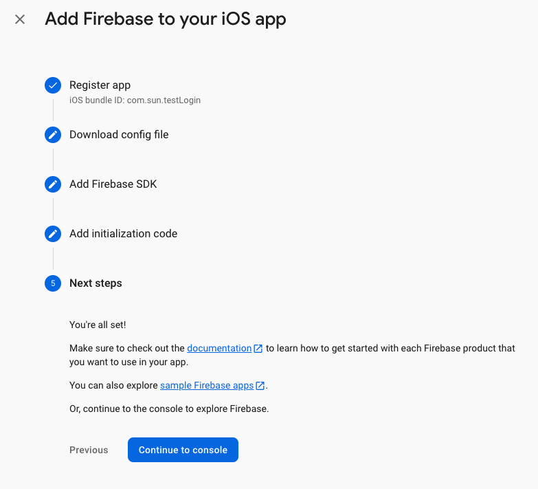 Tiếp theo hãy làm theo hướng dẫn của firebase, thêm BundleID (yêu cầu) và App nickname (không yêu cầu). Recommend sử dụng cùng một bundleID cho cả hai nền tảng: