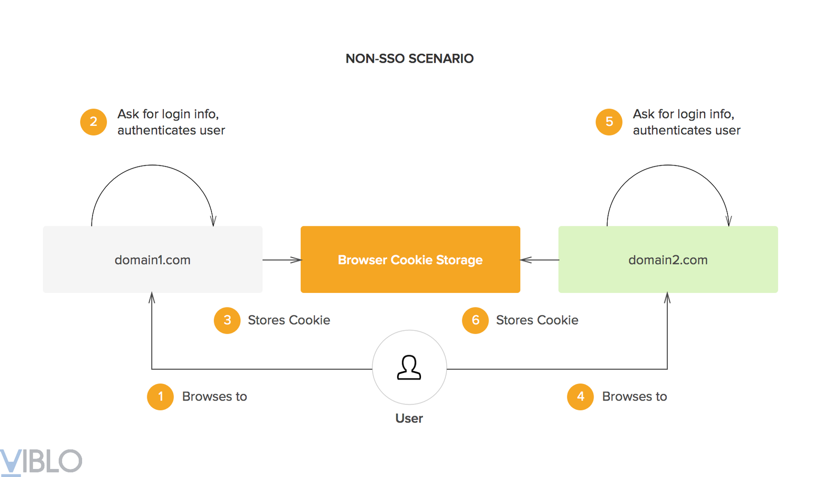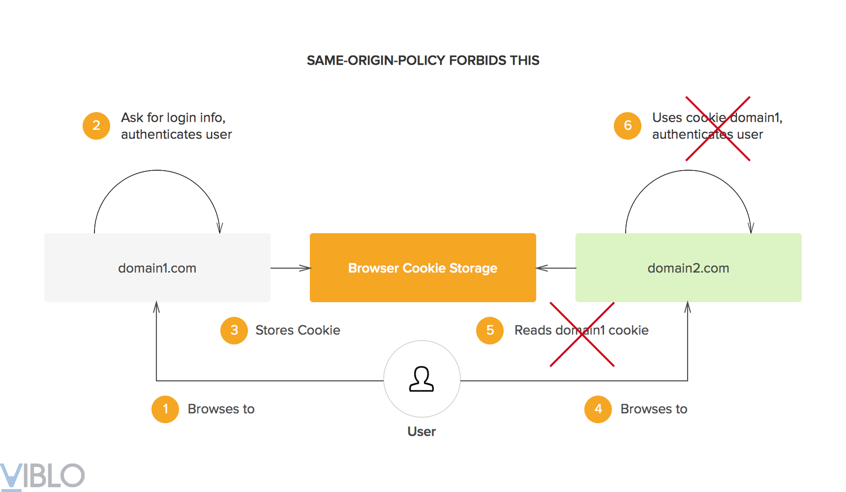 Một user khi đăng nhập vào hệ thống A thì domain của A sẽ lưu thông tin định danh vào cookie, để user này cũng là đã đăng nhập khi truy cập vào hệ thống B thì domain B sẽ phải đọc được cookie của A tạo ra, nhưng điều này là không thể. Với các trình duyệt hiện nay, domain chỉ có thể truy cập cookie do chính nó tạo ra.