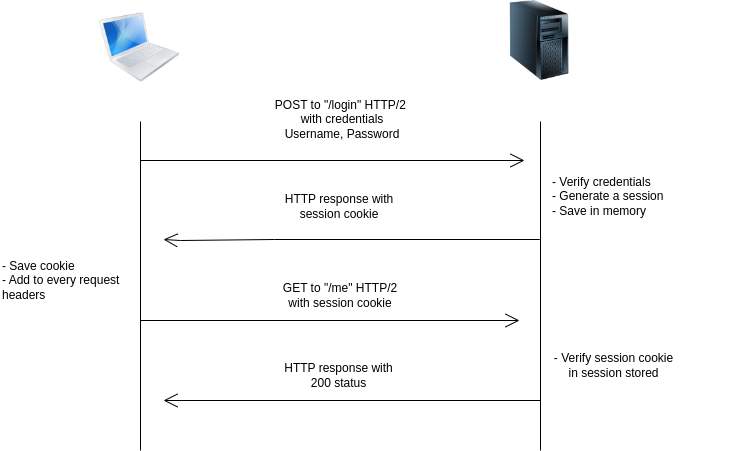Mỗi lần người dùng vào trang web, trình duyệt sẽ gửi yêu cầu chứa cookie đến server. Luồng xác thực được thực hiện như sau: