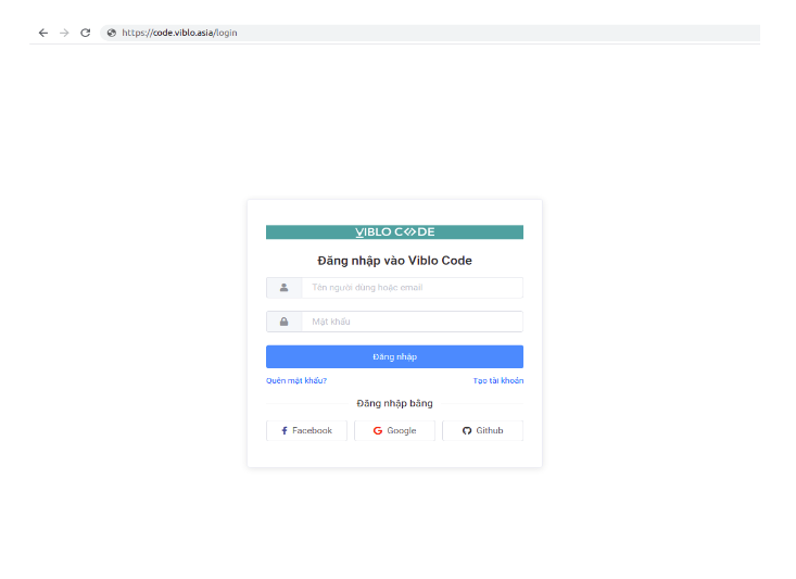 Trang đăng nhập Viblo Code ngày đầu ra mắt.