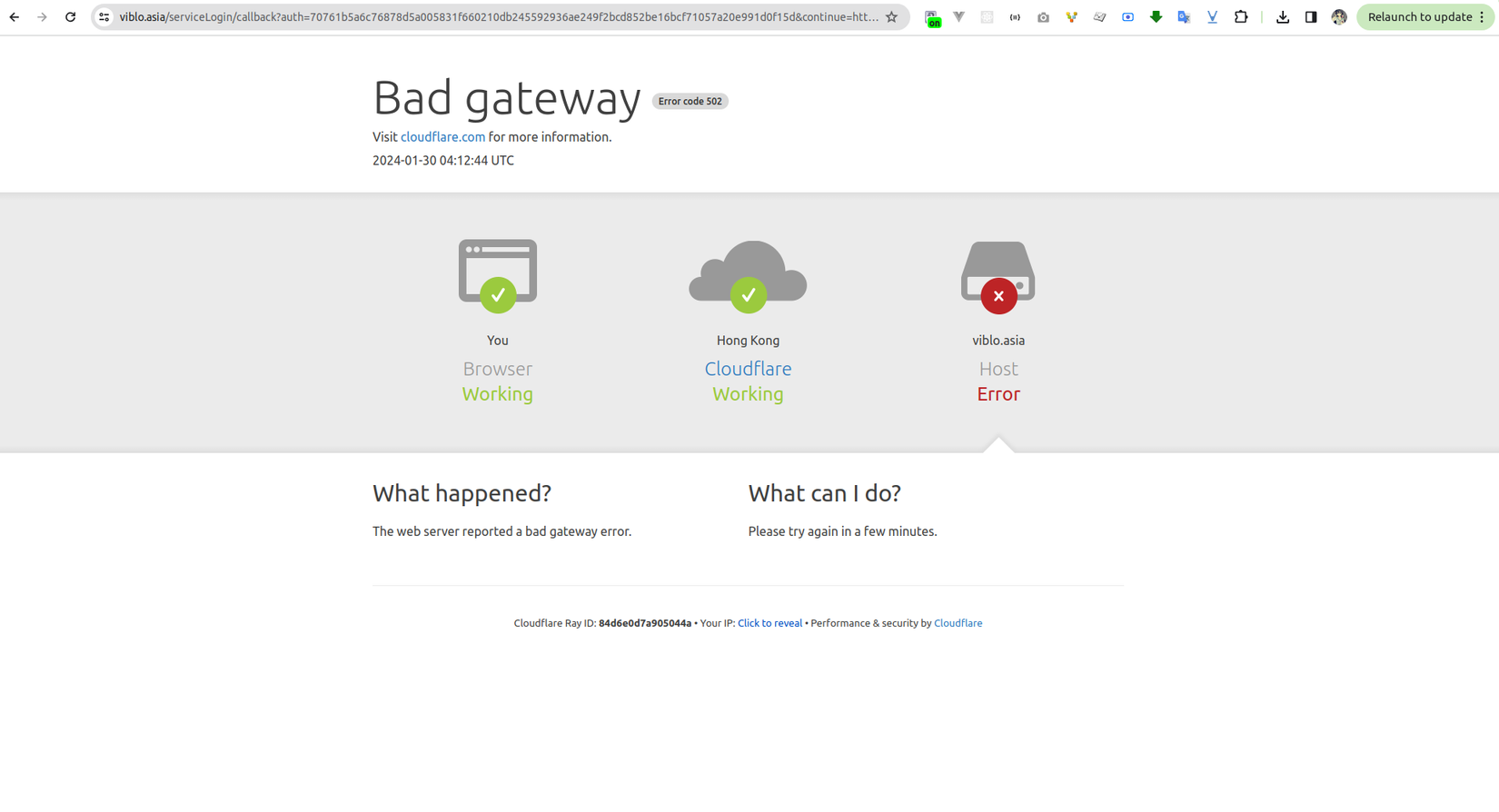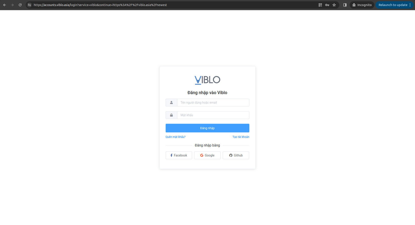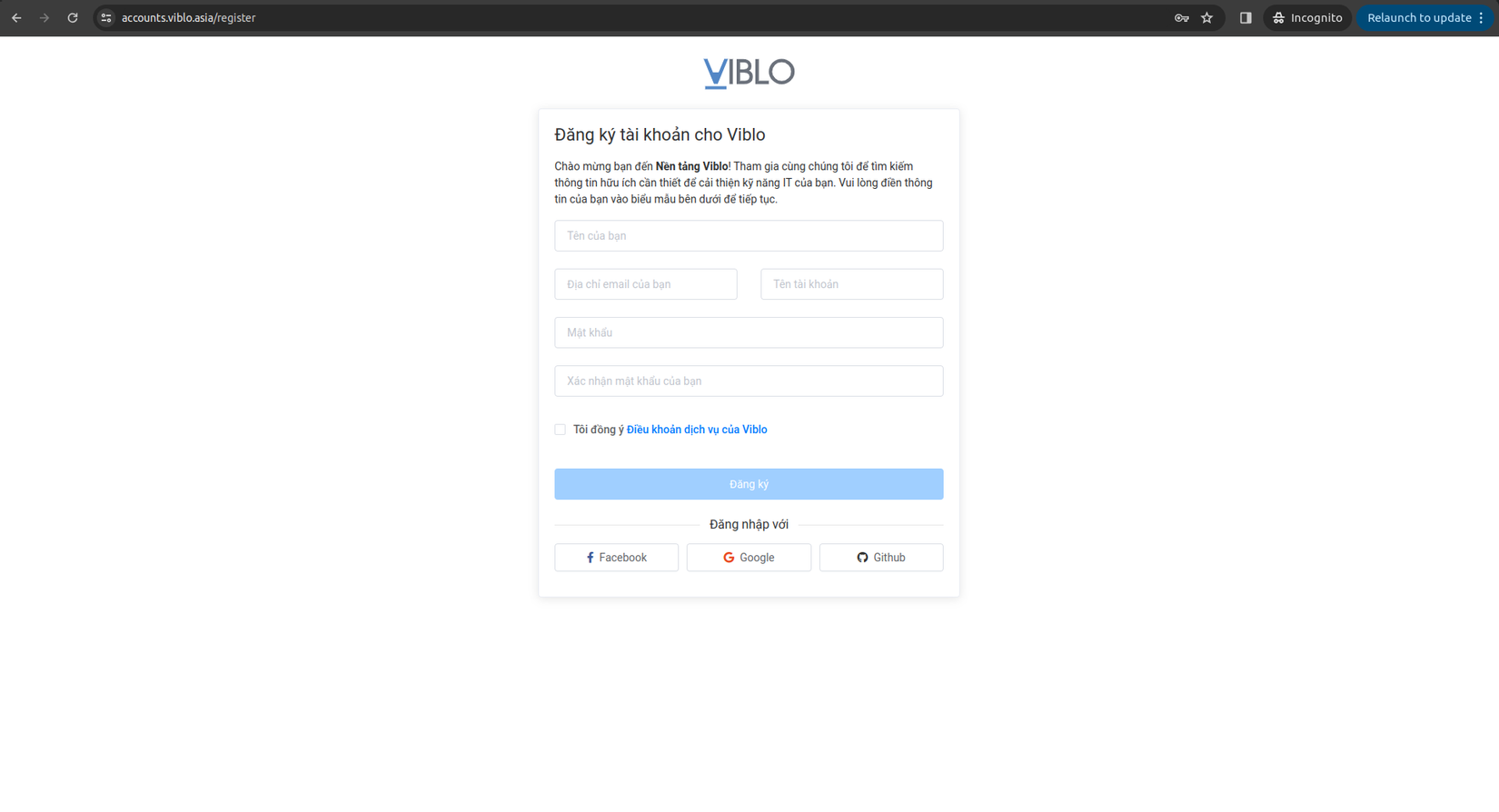 Dịch vụ Viblo có lỗi khi xác thực tài khoản.