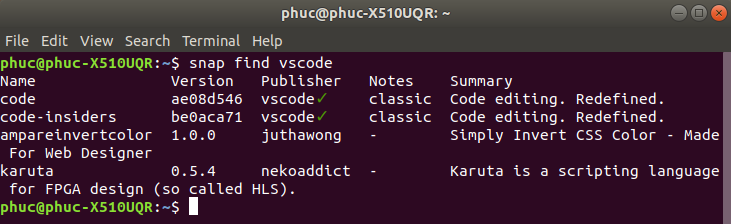 Việc đầu tiên bạn muốn cài đặt một ứng dụng nào đó bạn phải tìm kiếm hoặc kiểm tra xem nó có tồn tại trong kho ứng dụng không.Ở snap việc tìm kiếm khá nhanh và đơn giản.